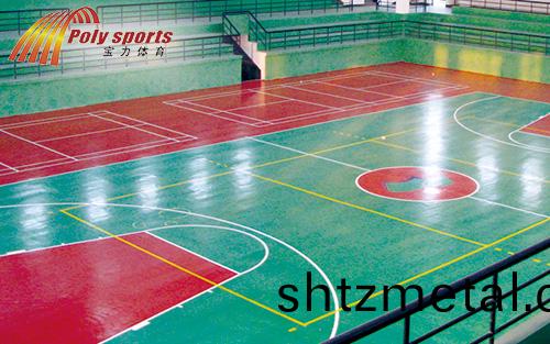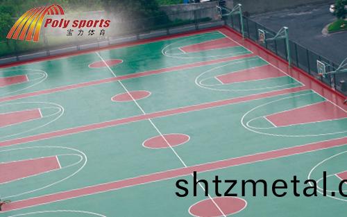 籃毬場施工廠傢寶力體(ti)育的硅pu毬場(chang)施工方案使(shi)用與室內、外籃(lan)毬場、網毬場(chang)、羽毛毬場咊乒乓毬場地麵舖設,施工工序:基麵處理→舖設彈性層(ceng)→舖設加強層→舖設耐磨麵層→劃線→清場完工。